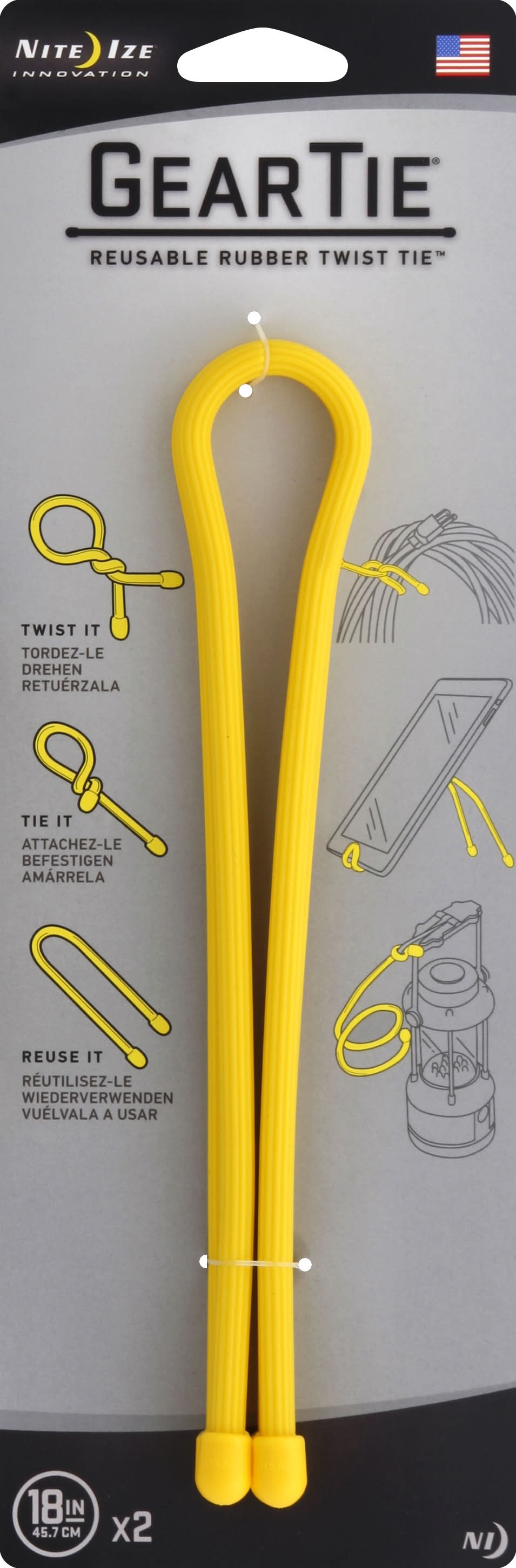 Gear Tie Nite Ize Reusable Rubber Twist Tie, Yellow