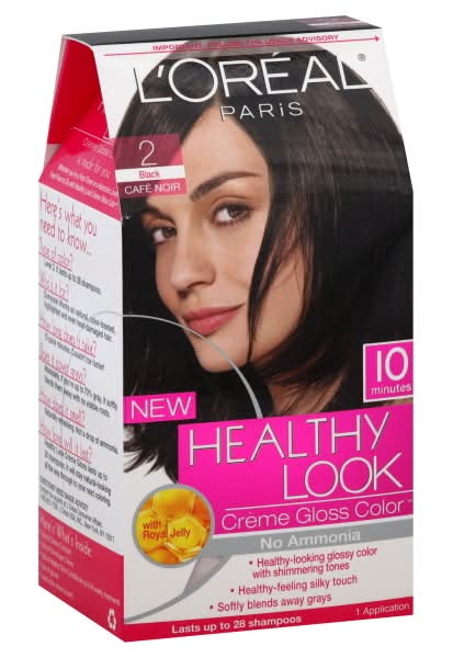 L'Oréal Healthy Look Creme Gloss Color Hair Dye, 2 Black Cafe Noir