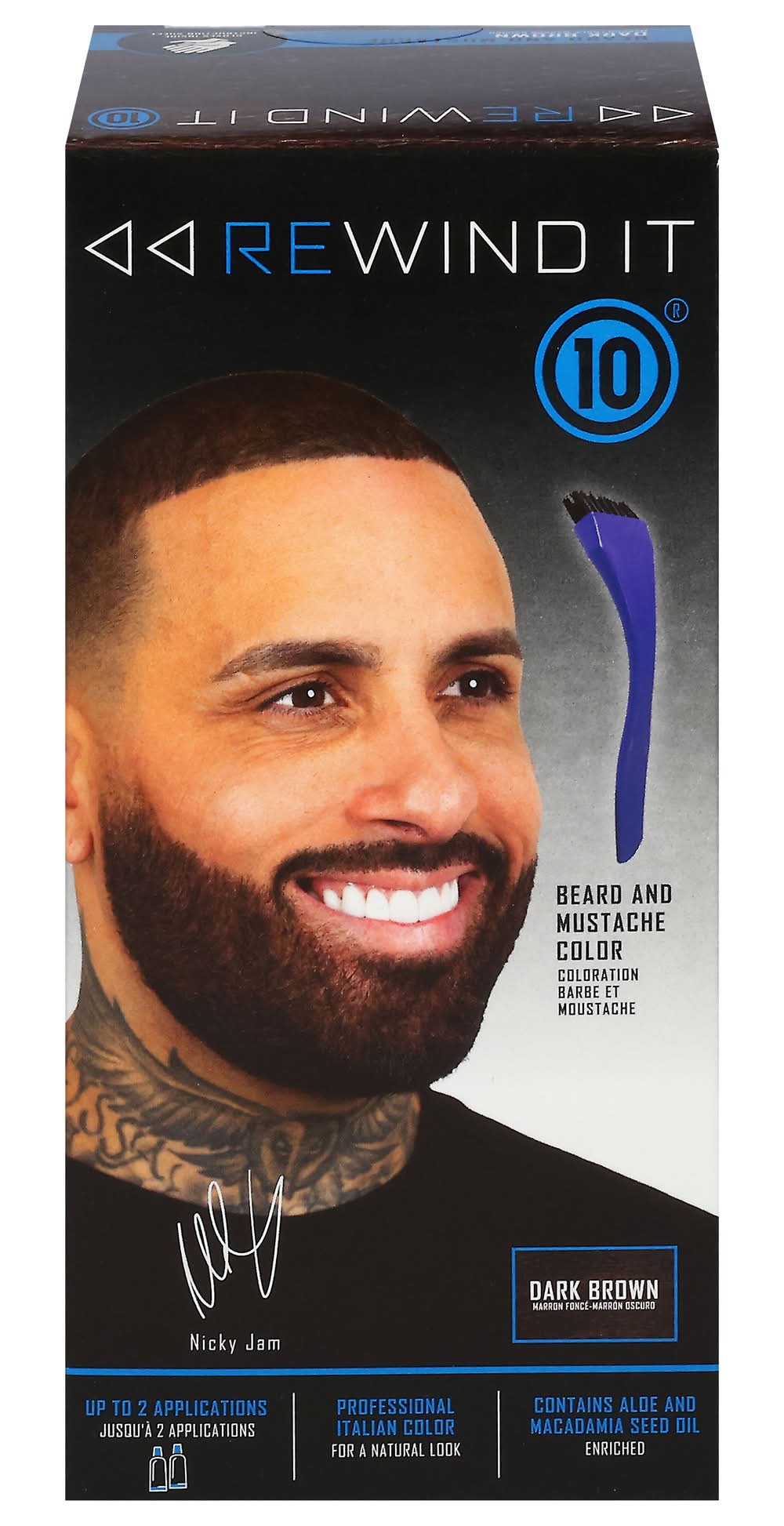 Rewind It 10 Beard & Mustache Color, Dark Brown (0.49 oz)