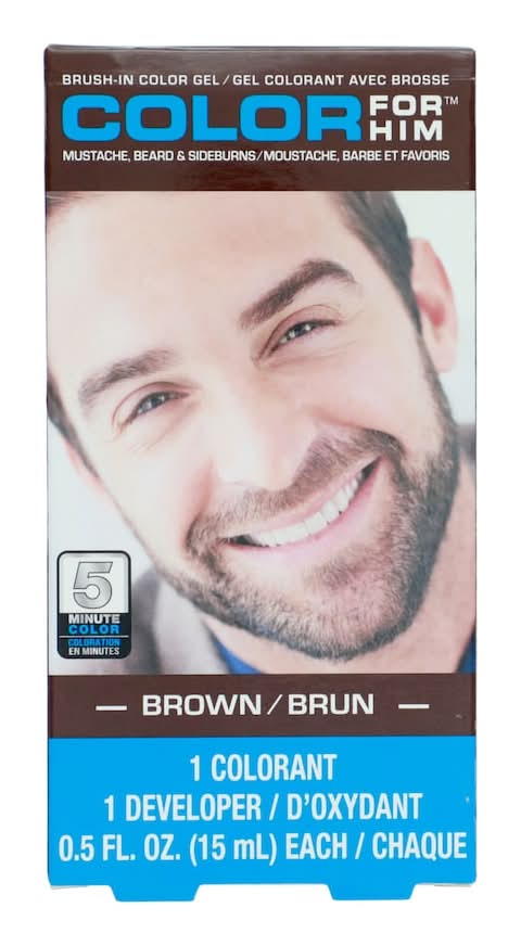 Color For Him Brush in Facial Hair Color Gel, Men, Brown (1 fl oz, 2 ct)