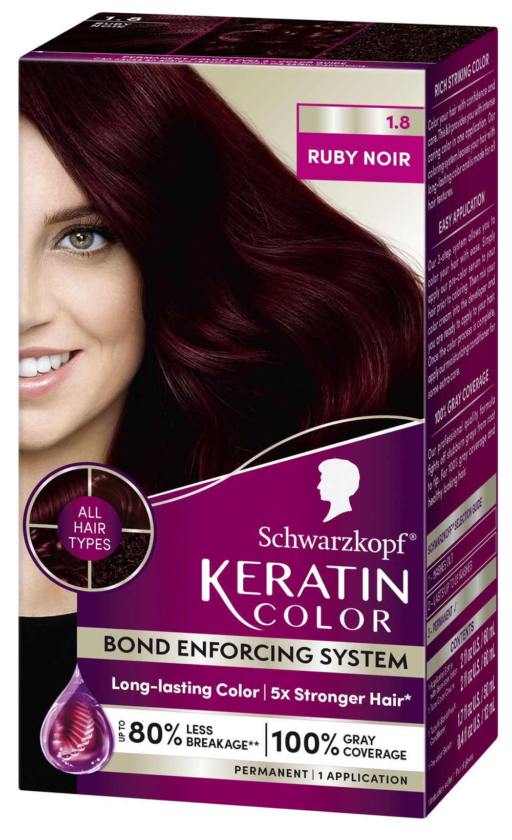 Keratin Color Permanent Hair Color, 1.8 Ruby Noir (6.1 fl oz)