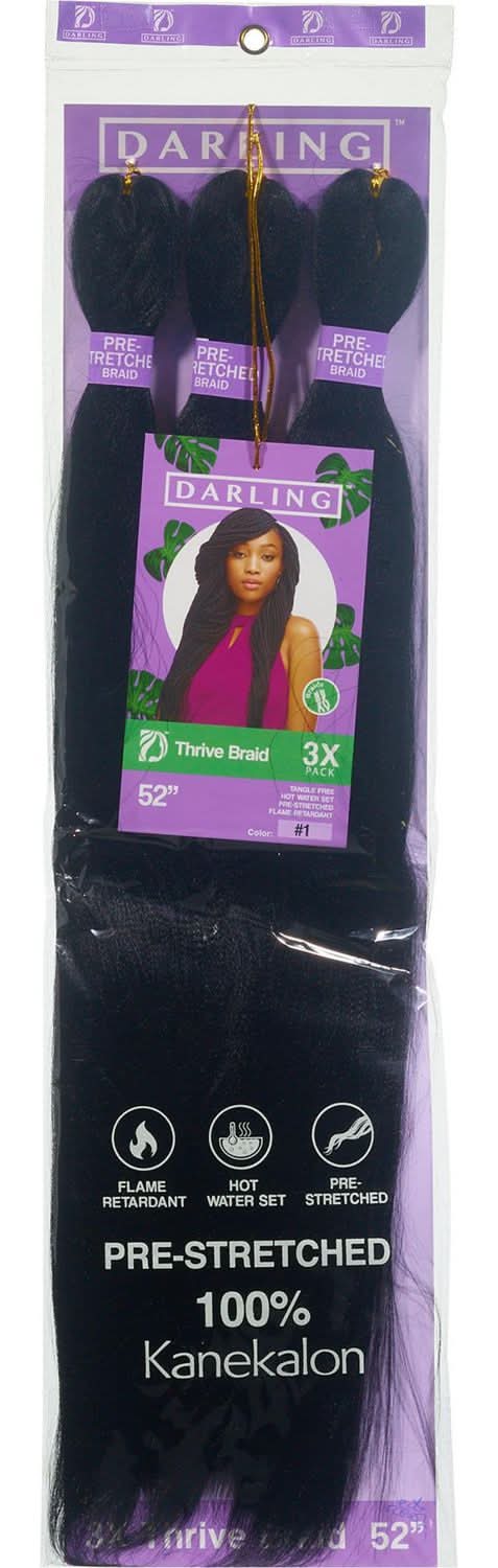 Darling Pre-Stretched Thrive Braid Hair Extensions, Women, 52 in, Jet Black (3 ct)