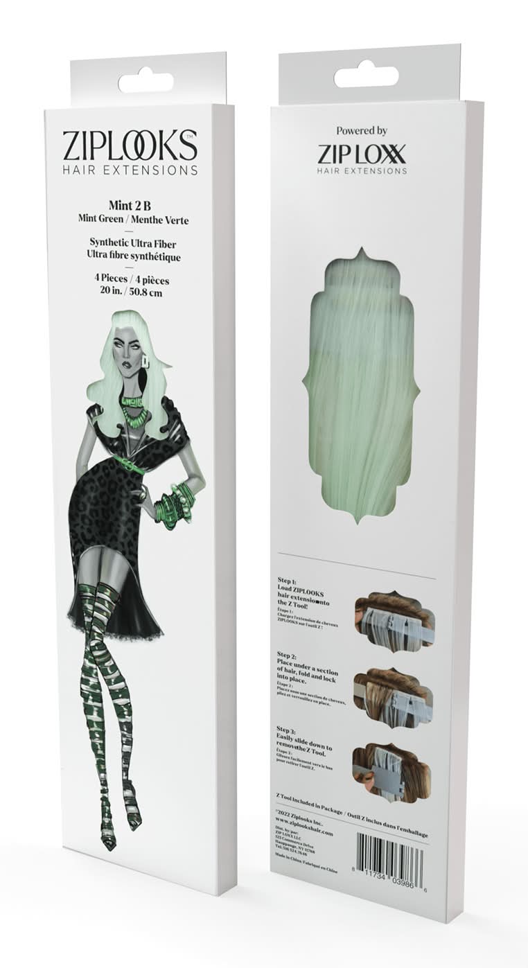 Ziplooks Hair Synthetic Ultra Fiber Hair Extensions, 20 in, Mint 2 B (4 ct)
