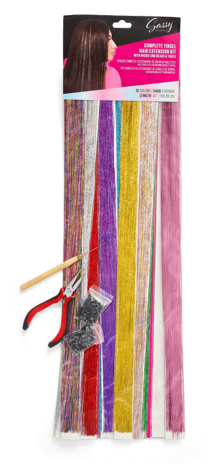 The Sassy Collection Complete Tinsel Hair Extension Kit, 47", Assorted