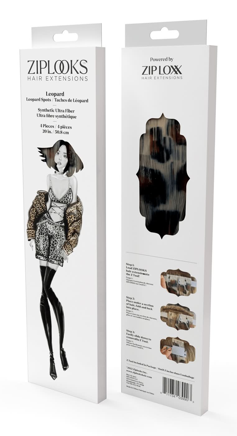 Ziplooks Ultra Fiber Hair Extensions, 20 in, Leopard (4 ct)