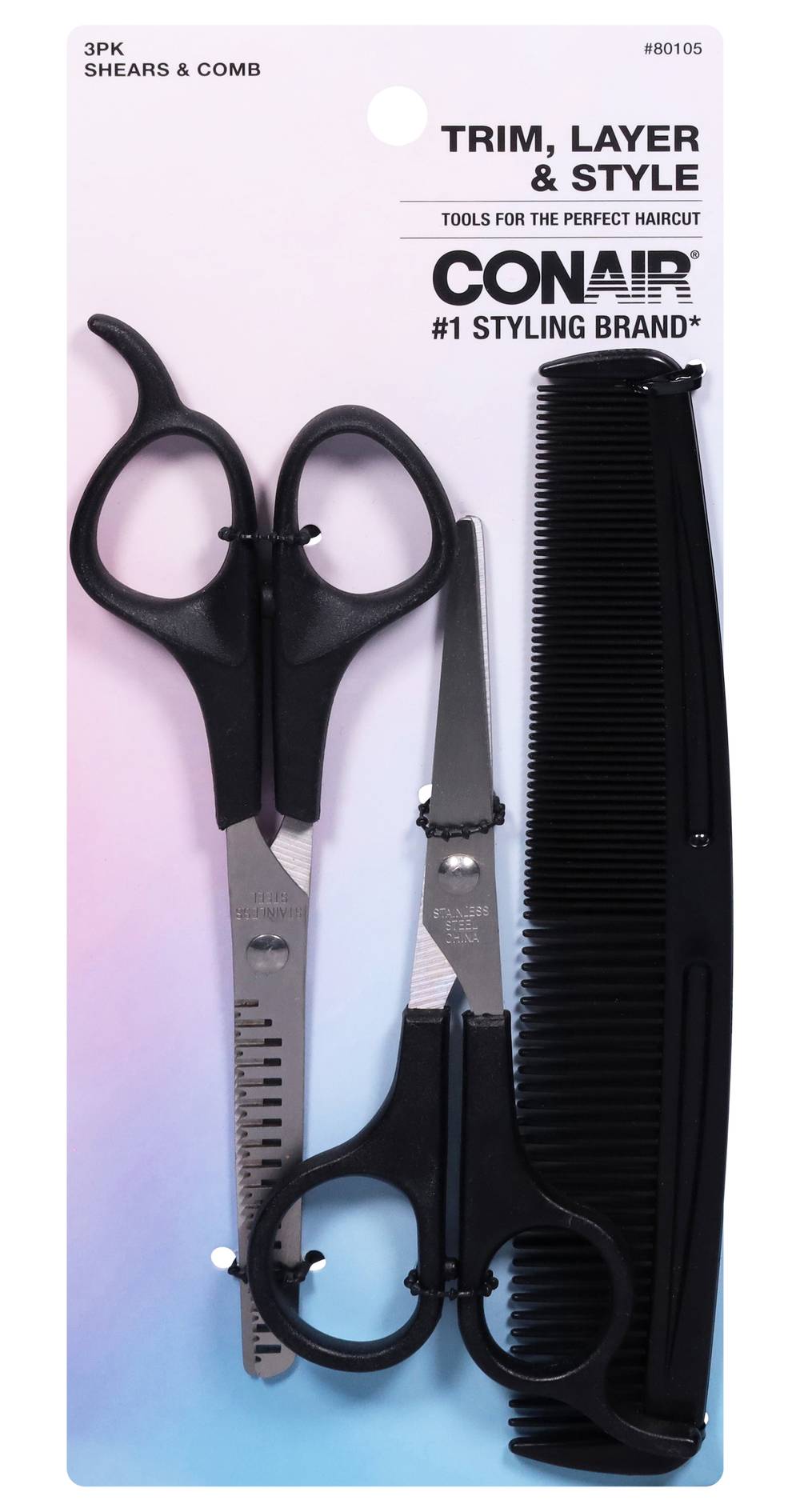 Conair Trim, Layer & Style Shears & Comb, Black (3 ct)