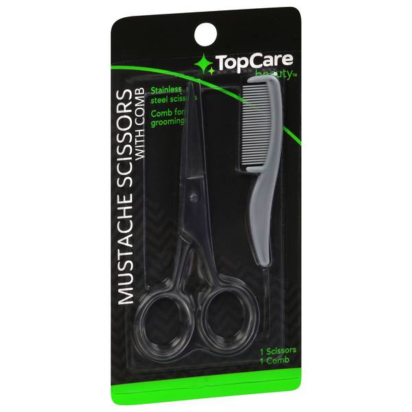 TopCare Beauty Moustache Scissors With Comb, Black-Grey (2 ct)