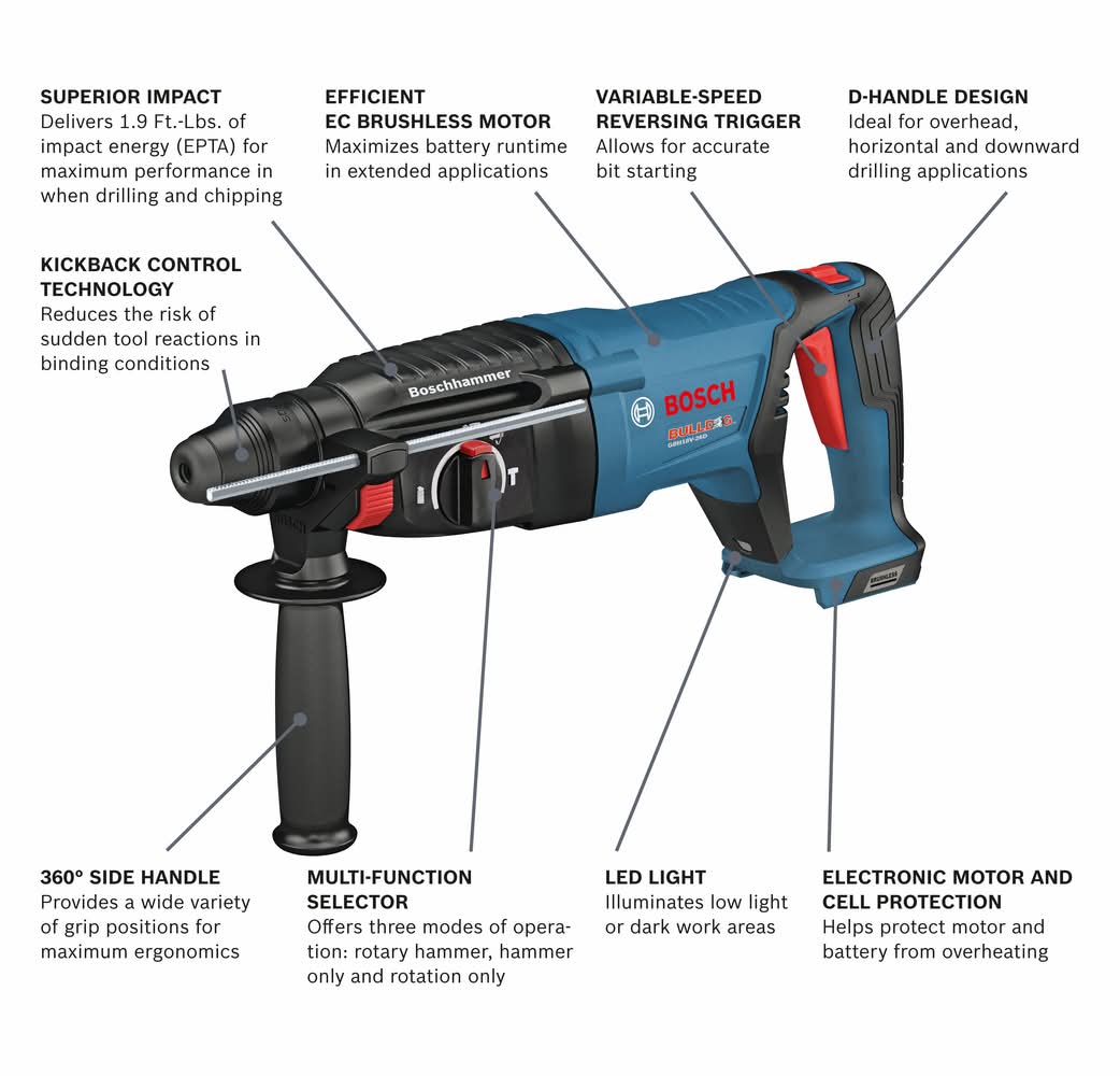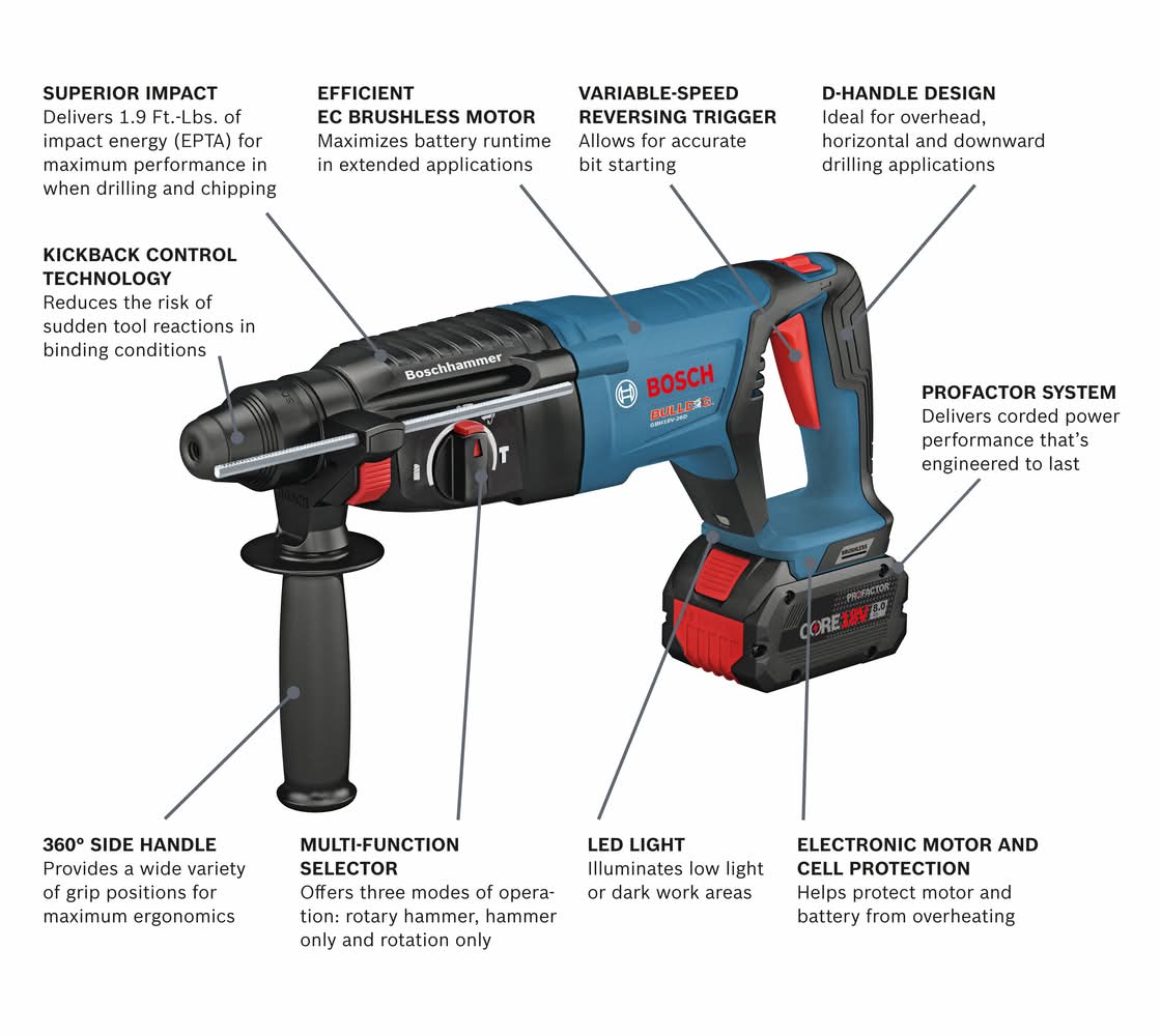 Bosch 18V Ec Brushless Sds-Plus Bulldog Rotary Hammer Kit (5.8 lbs)