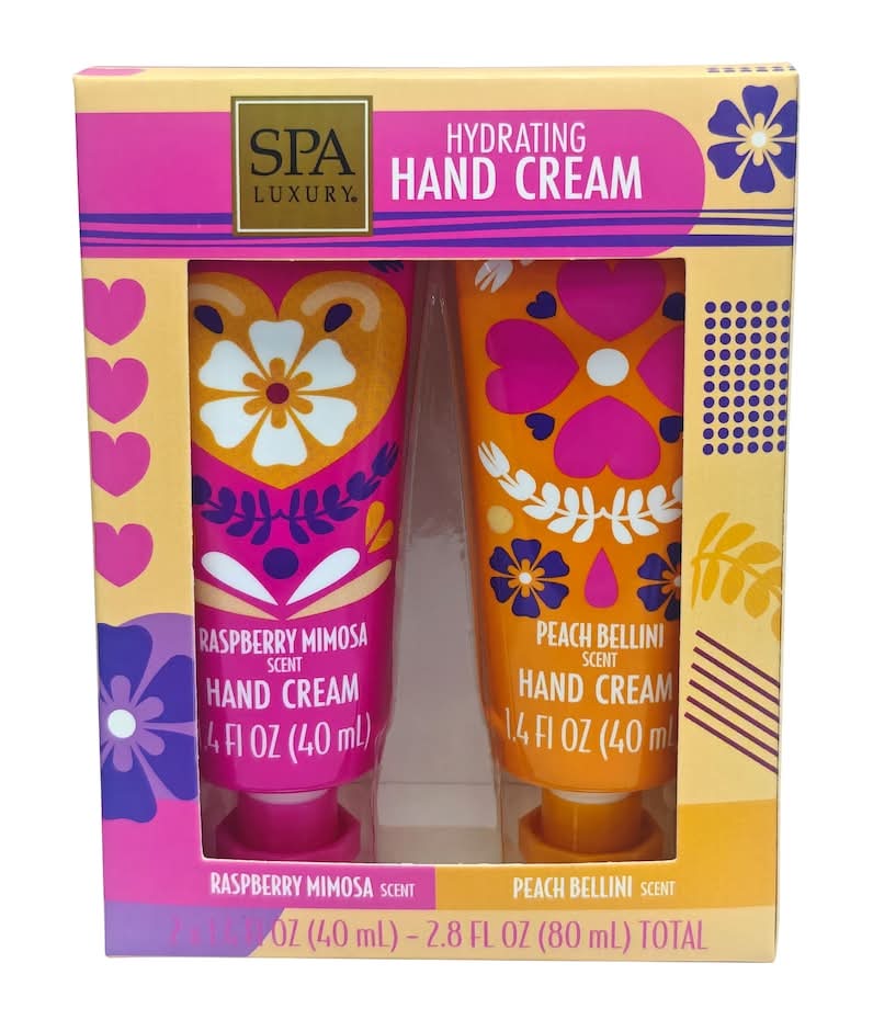 SPA Luxury Hydrating Hand Cream, Raspberry Mimosa-Peach Bellini (2 x 1.4 fl oz)