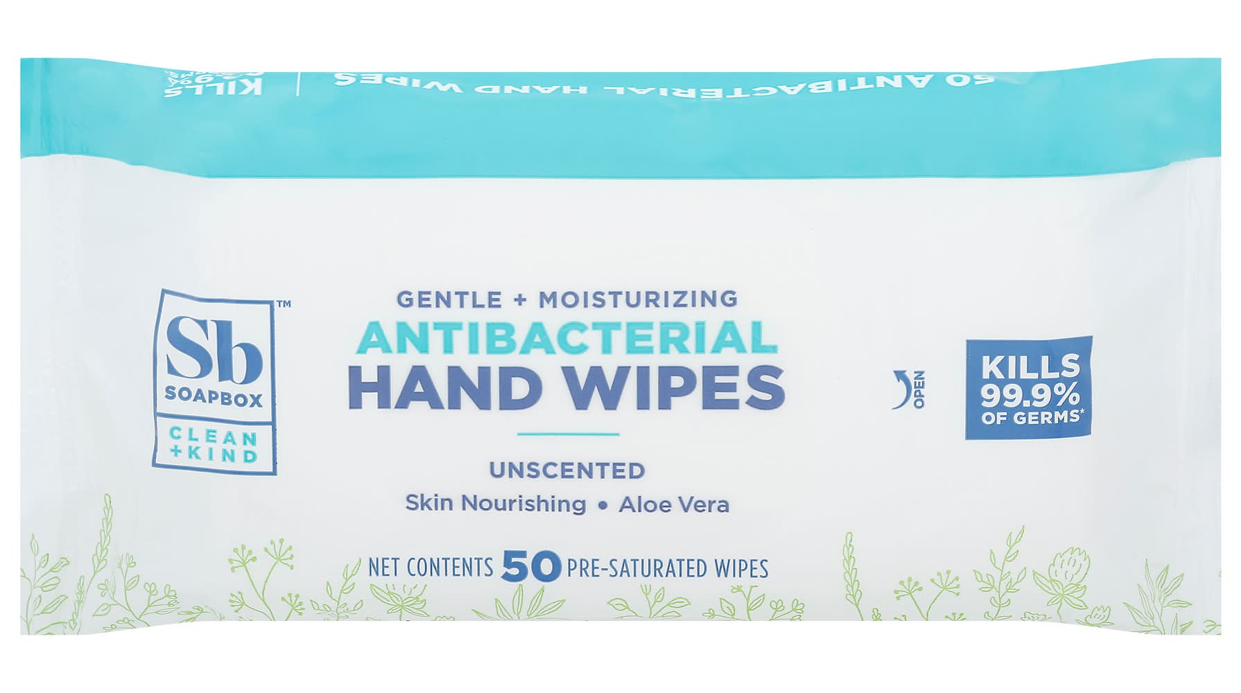Soapbox Unscented Gentle + Moisturizing Antibacterial Hand Wipes