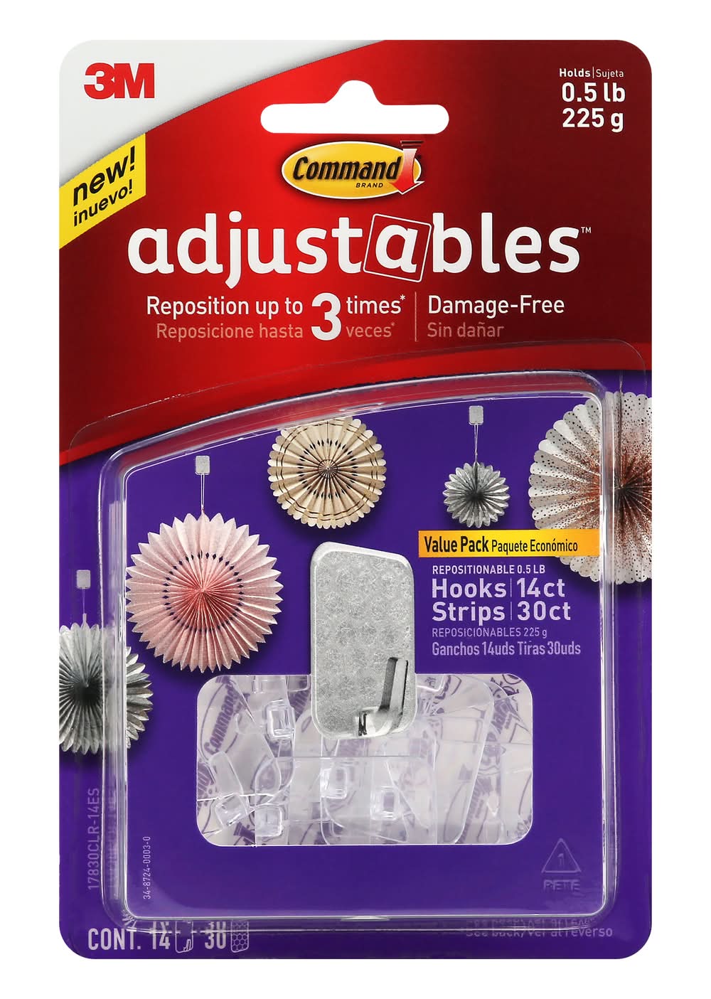 Command Repositionable Adjustables Hooks Strips (6.4 oz)