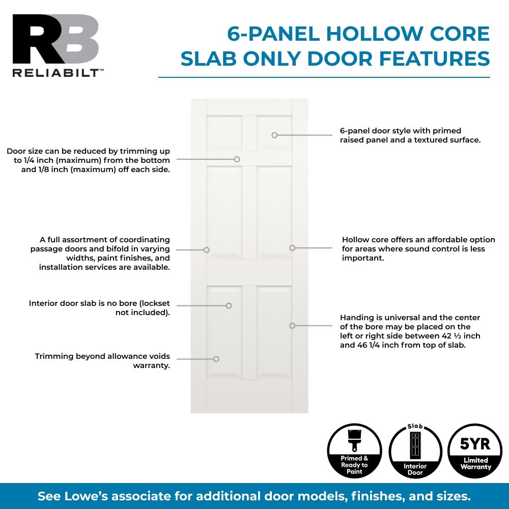 ReliaBilt Textured Hollow Core Primed Molded Composite Slab Door, 30x80 in, Off-White