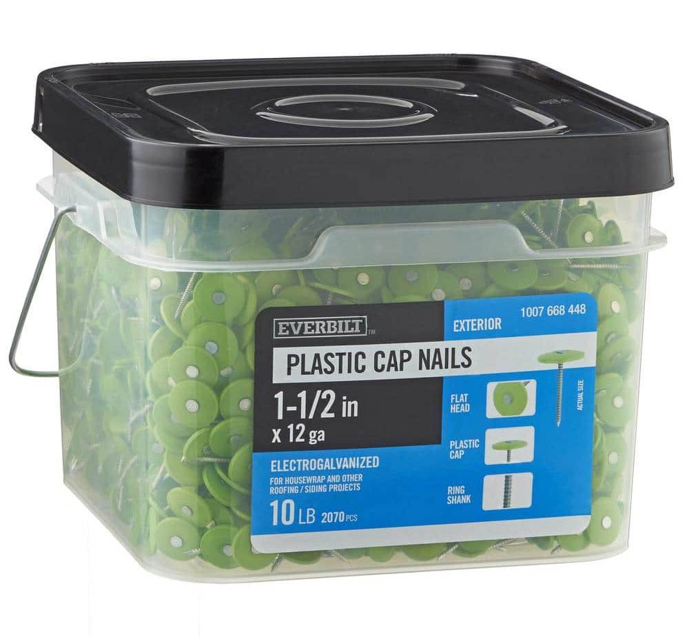Everbilt Electro Galvanized Plastic Cap Roofing Nails, 1-1/2 in, Green (10 lbs, 2070 ct)