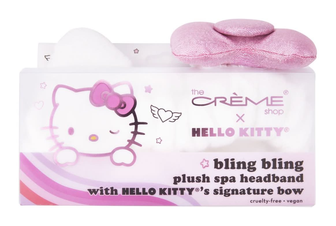 The Crème Shop Hello Kitty Y2k Bling Bling Plush Spa Headband, White-Pink