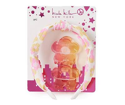 Nicole Miller Floral Mixed Headband & Claw Clip Set, Yellow-Pink (3 ct)