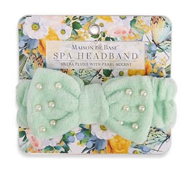 Maison de Base Green Pearl & Plush Bow Spa Headband