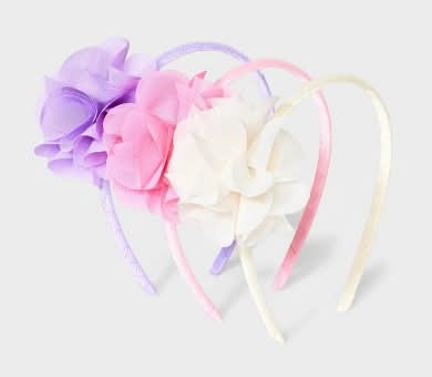 Cat & Jack Girls Chiffon Flower Headbands, Pink/Purple/White (3 ct)