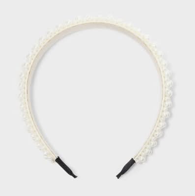 Art Class Abs & Polyester Girls Pearls Wide Headband, White