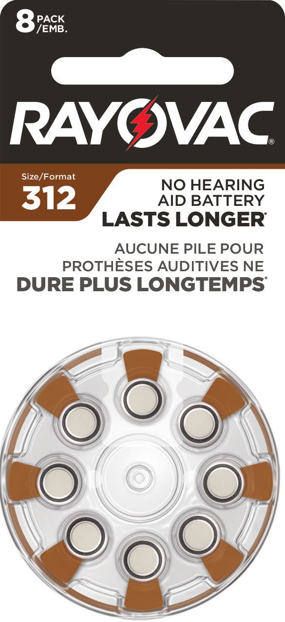 Rayovac Hearing Aid Batteries, Size 312 (8 ct)