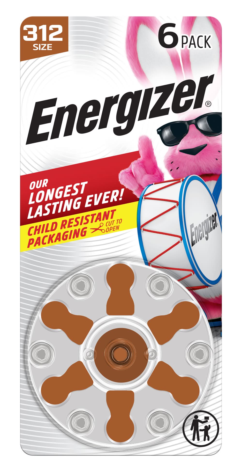 Energizer Hearing Aid Batteries, 312, Brown (6 ct)