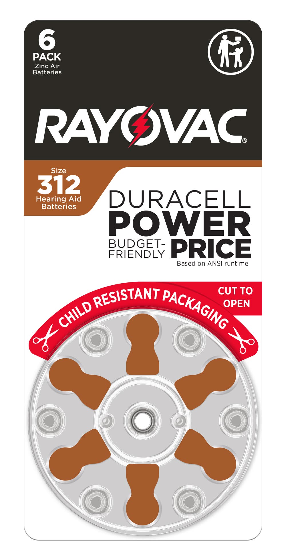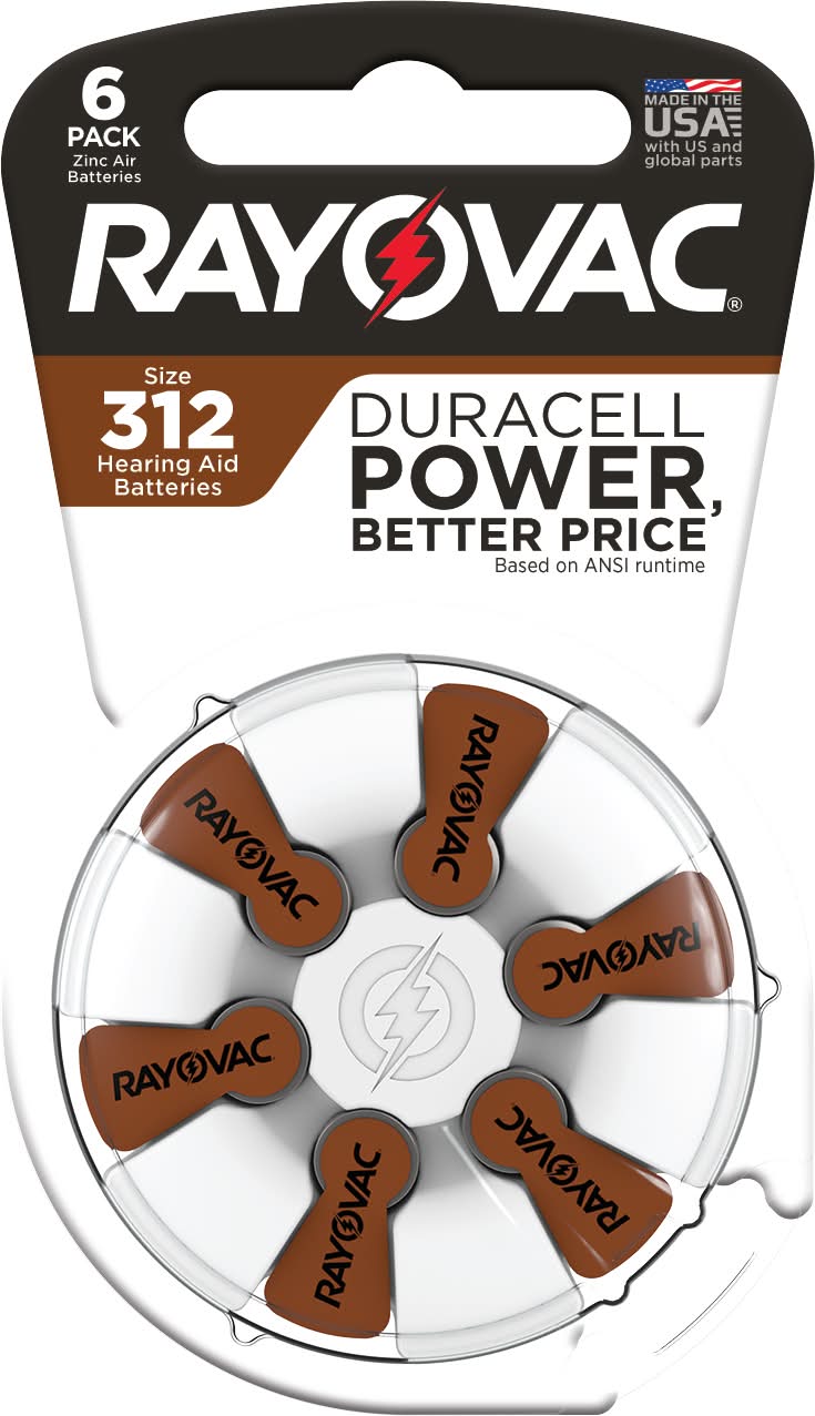 Rayovac Zinc Air Hearing Aid Batteries, Size 312 (6 ct)