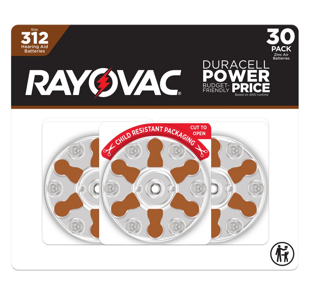 Rayovac Hearing Aid Batteries, 312 (30 ct)