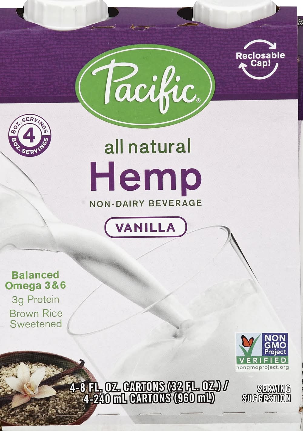 Pacific All Natural Hemp Non-Dairy Beverage, Vanilla (4 x 8 fl oz)