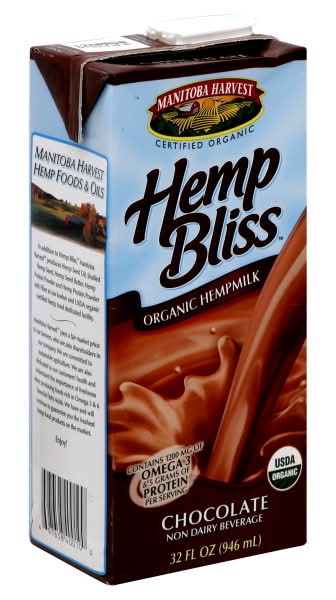 Manitoba Harvest Hemp Bliss Organic Unsweetened Non-Dairy Milk, Chocolate (32 fl oz)
