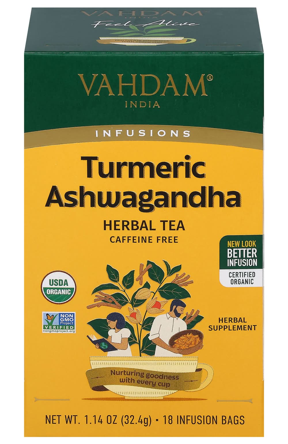 VAHDAM Organic Turmeric Ashwagandha Herbal Tea (1.27 oz, 18 ct)
