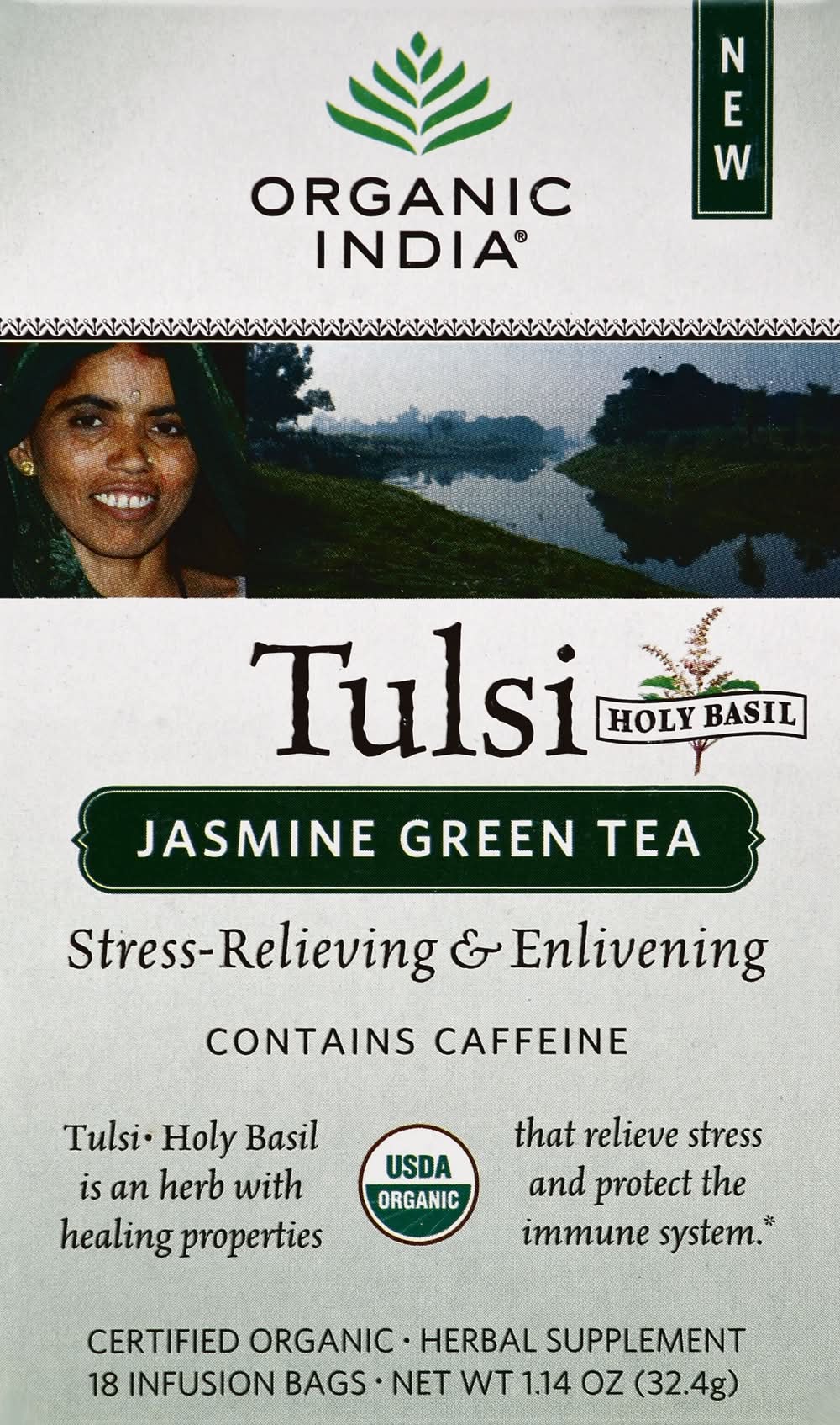 Organic India Tulsi Tea, Jasmine Basil Chamomile, Green (1.14 oz, 18 ct)