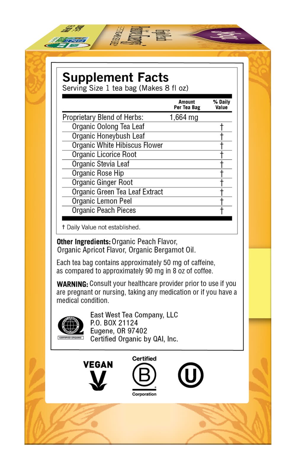 Yogi Bright Day Tea Bags Peach Bergamot Herbal Supplement (1.02 lbs, 16 ct)