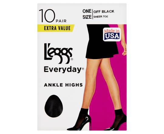 L'eggs Everyday Off Ankle Highs Extra Value Sheer Toe Pair, Black (10 ct)
