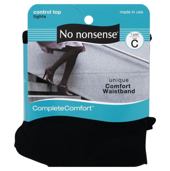 No Nonsense Control Top Comfort Waistband Pantyhose, Size C, Black