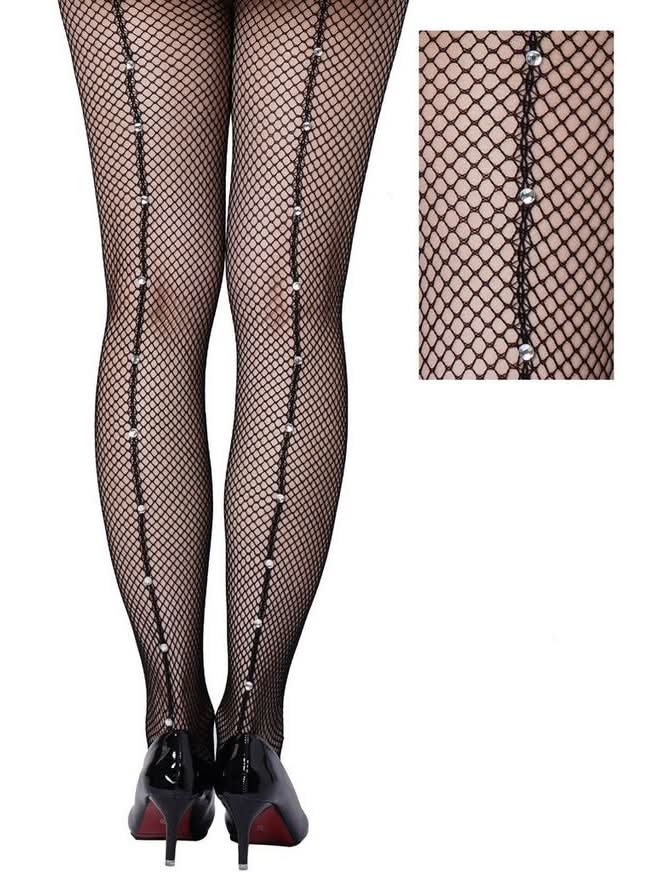 Party City Adult Fishnet Stockings With Crystal Back Seam, Black