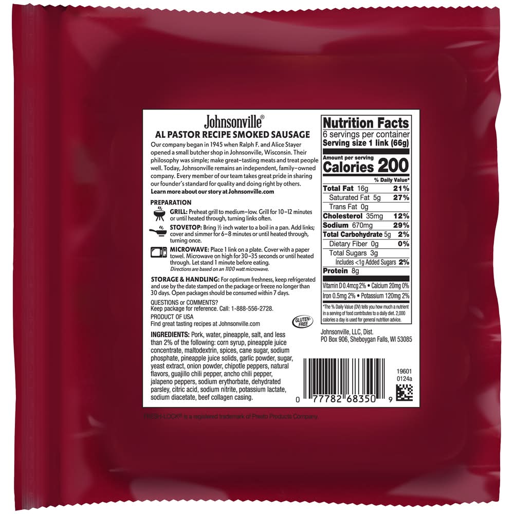 Johnsonville Cooked Al Pastor Pork Sausage Links Package (14 oz)