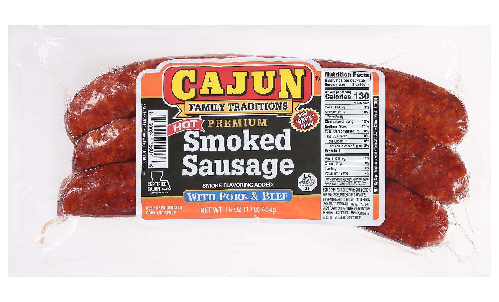 Cajun Hot Sausage, Premium Smoked & Pork & Beef (16 oz, 3 ct)