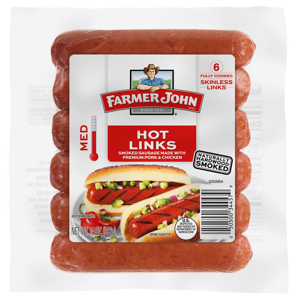 Farmer John Smoked Sausage Medium Hot Links (13.8 oz, 6 ct)