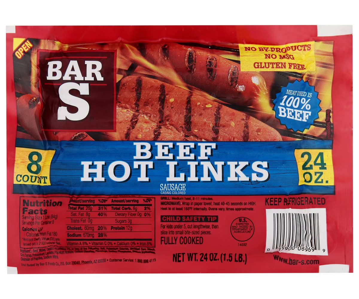 Bar-S Beef Hot Links Sausage (24 oz, 8 ct)
