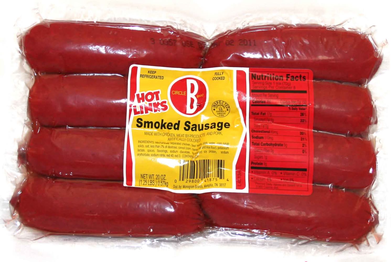 Circle B Hot Smoked Sausage Links (20 oz, 8 ct)