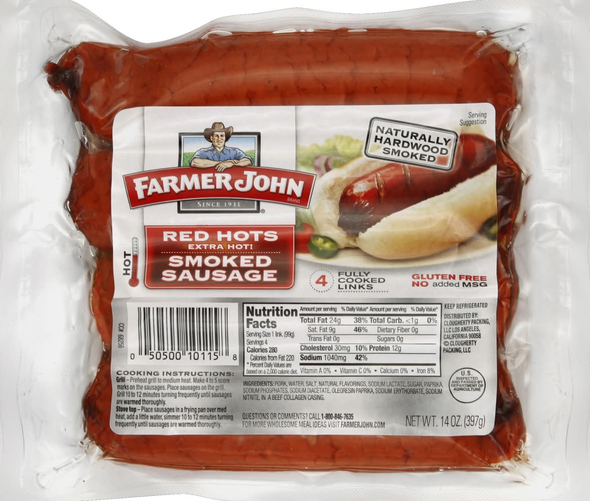 Farmer John Hot Louisiana Smoked Sausage (20 oz, 8 ct)