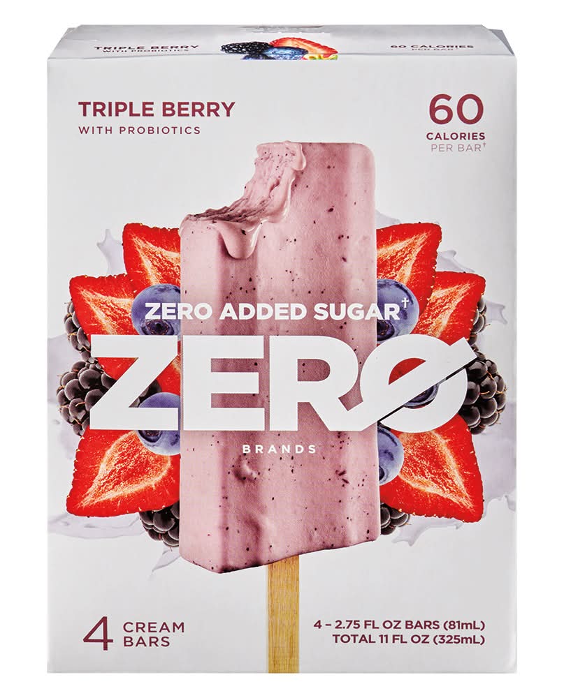 Zero Brands Flavored Ice Cream Bars, Triple Berry (4 x 2.75 fl oz)
