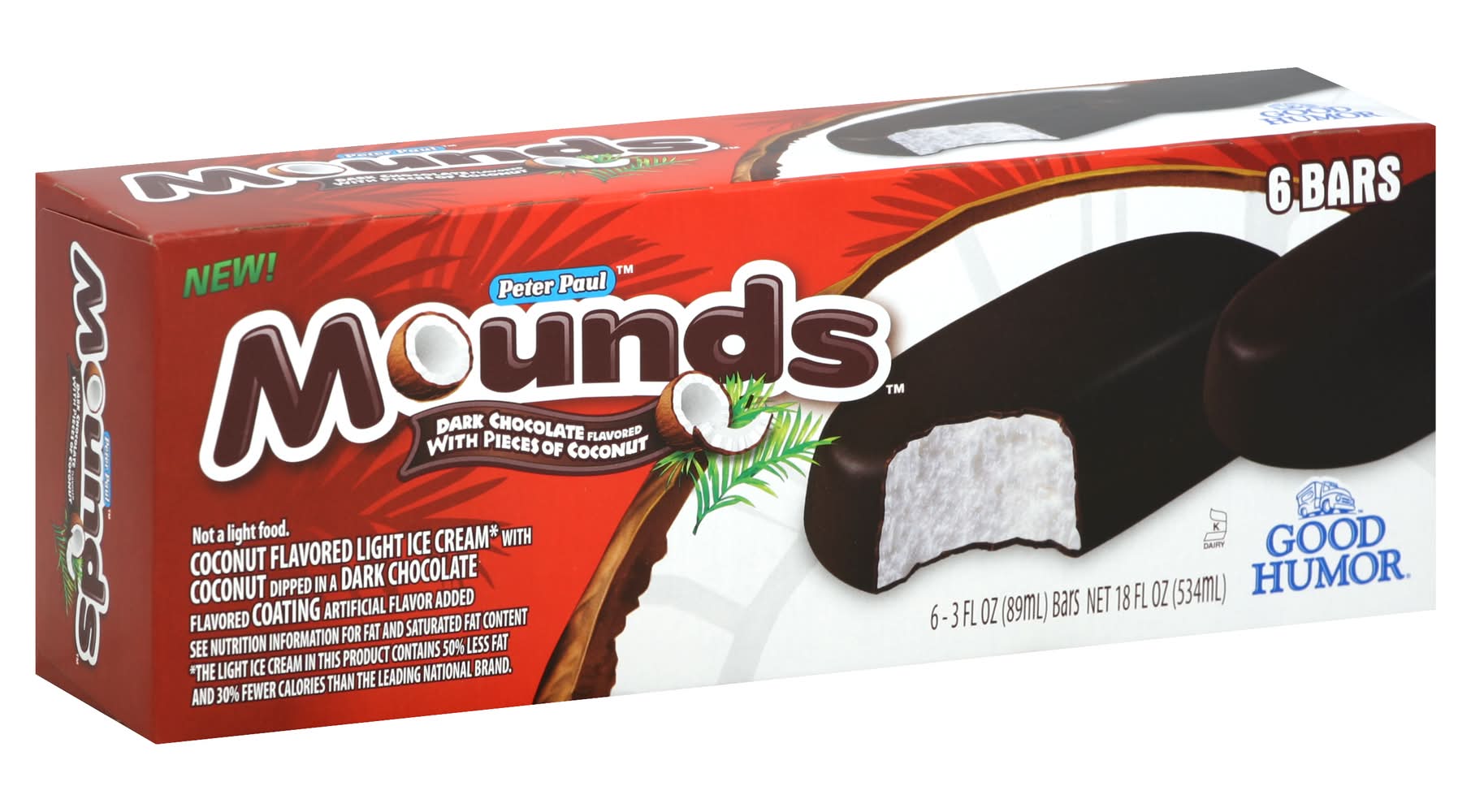 Mounds Ice Cream Bars, Dark Chocolate-Coconut (18 fl oz, 6 ct)