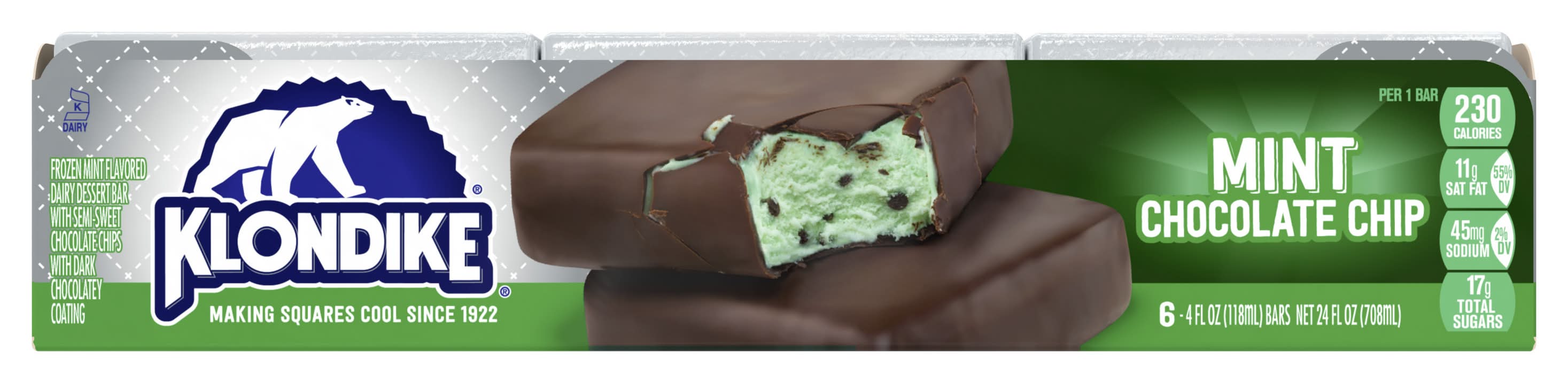Klondike Chocolate Chip Ice Cream Bars, Mint (24 fl oz, 6 ct)