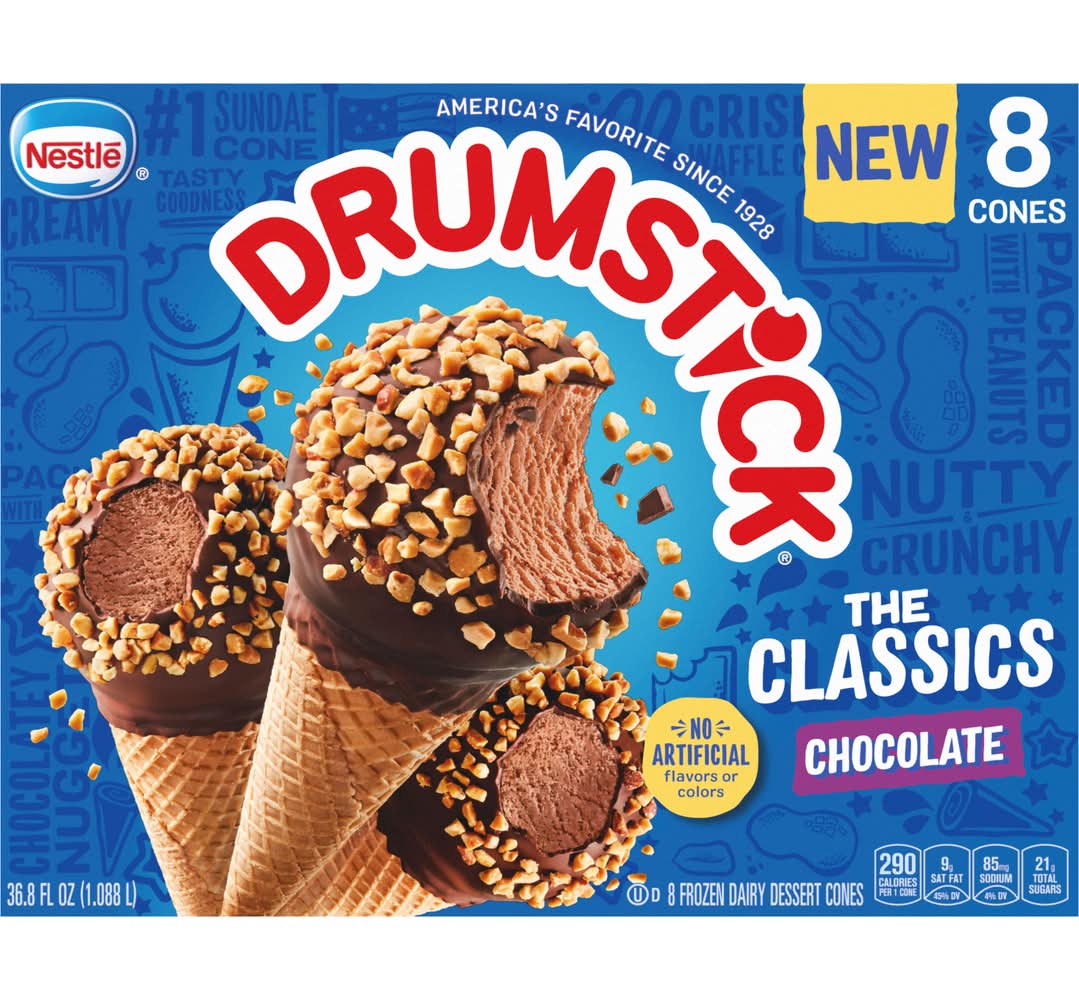 Drumstick The Classics Nutty Cones, Chocolate (36.8 fl oz, 8 ct)