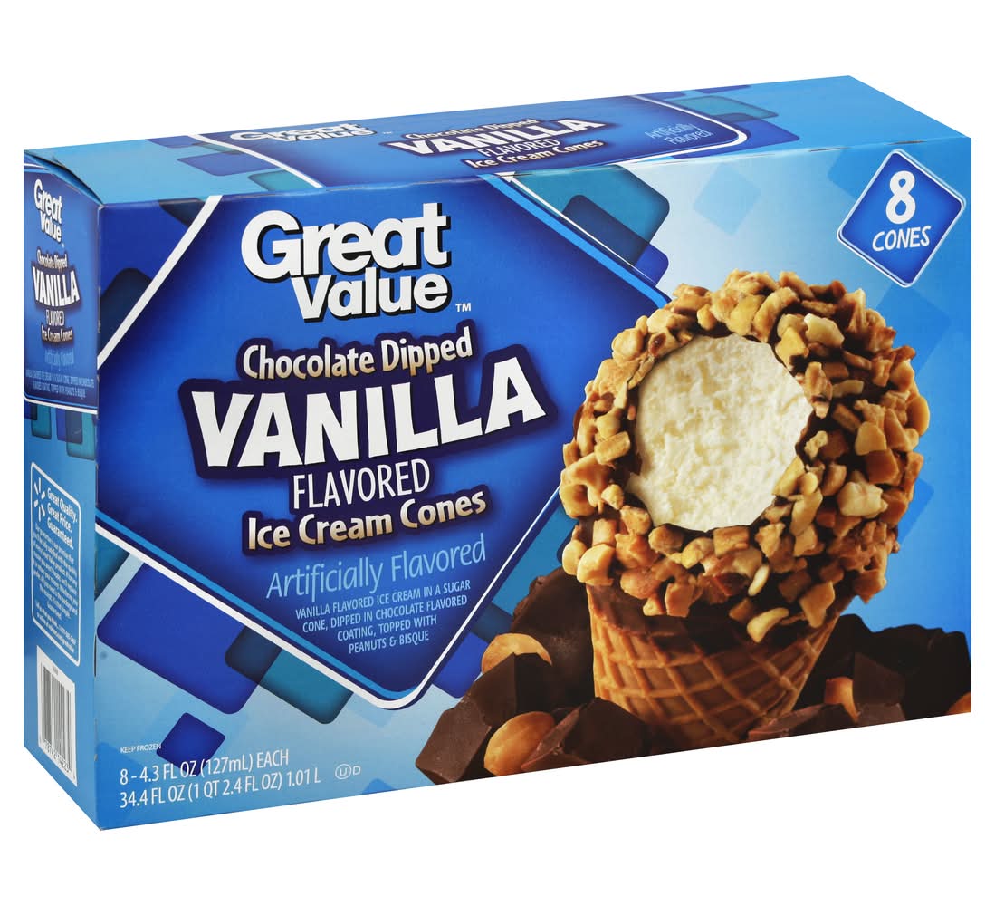 Great Value Ice Cream Cones, Chocolate Dipped Vanilla (4.3 fl oz, 8 ct)