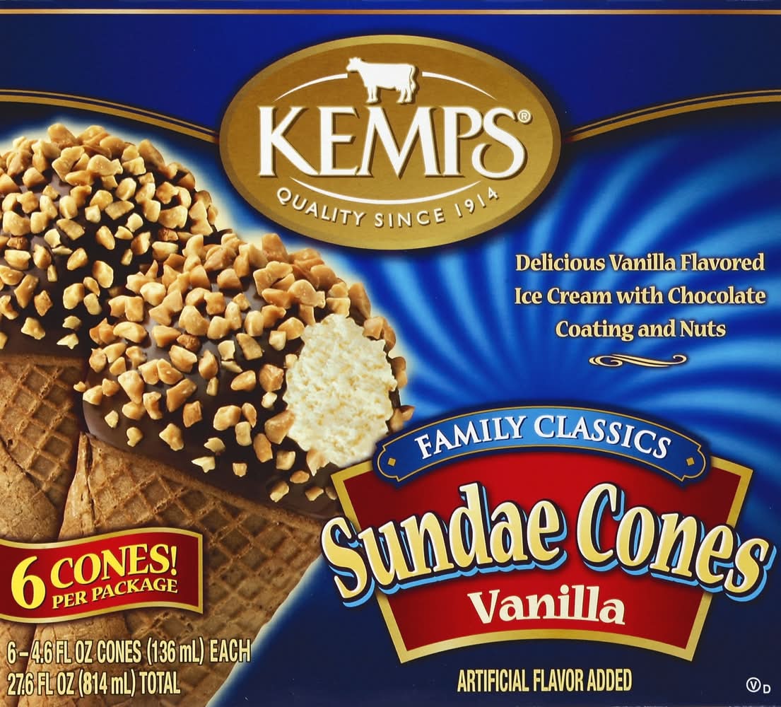 Kemps Family Classics Sundae Ice Cream Cones, Vanilla (27.6 fl oz, 6 ct)