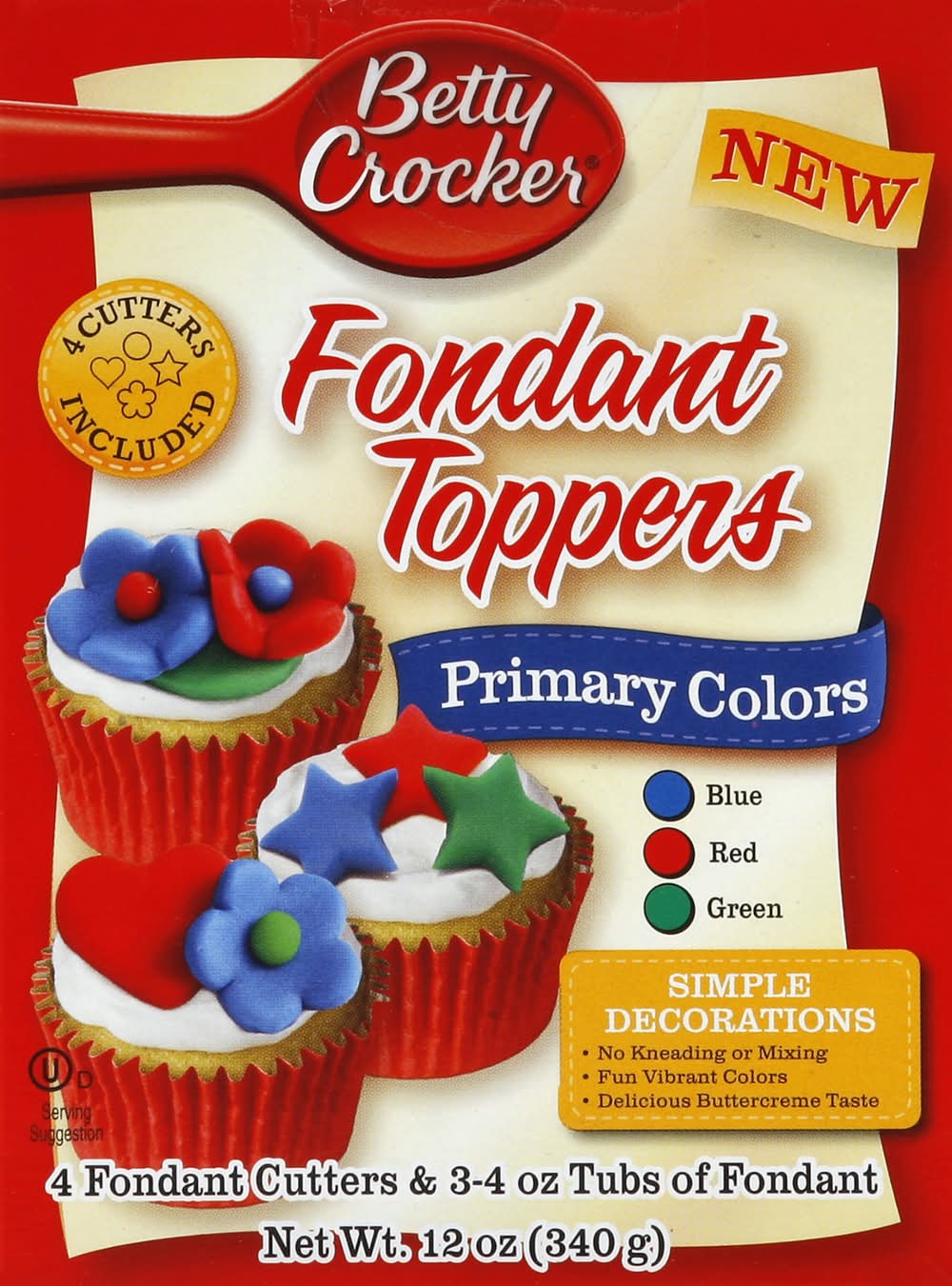Betty Crocker Fondant Toppers, Blue,Red,Green (12 oz)