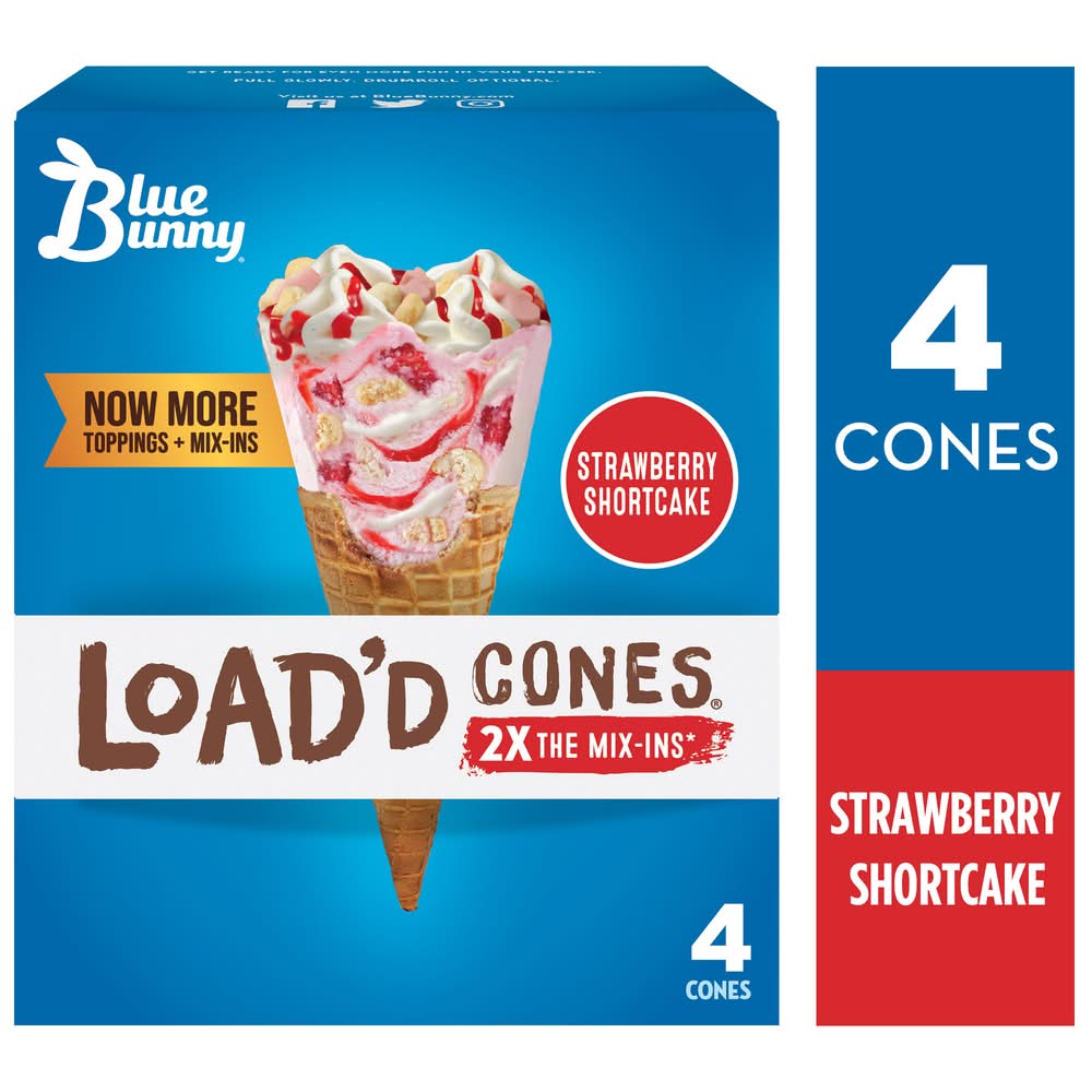 Blue Bunny Load'd Cones, Strawberry Shortcake (96 fl oz, 4 ct)