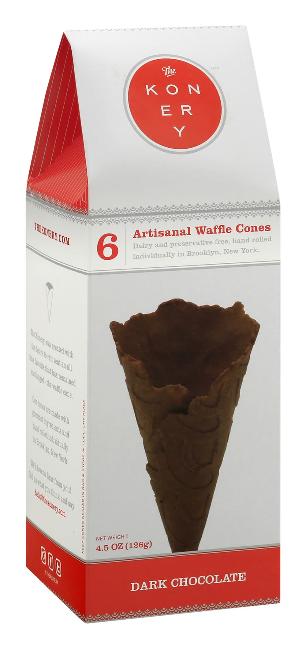 The Konery Waffle Cones, Dark Chocolate (4.5 oz, 6 ct)