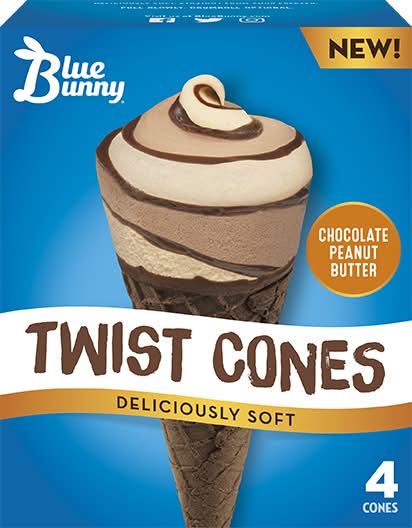 Blue Bunny Chocolate Peanut Butter Twist Cones (90 fl oz, 4 ct)